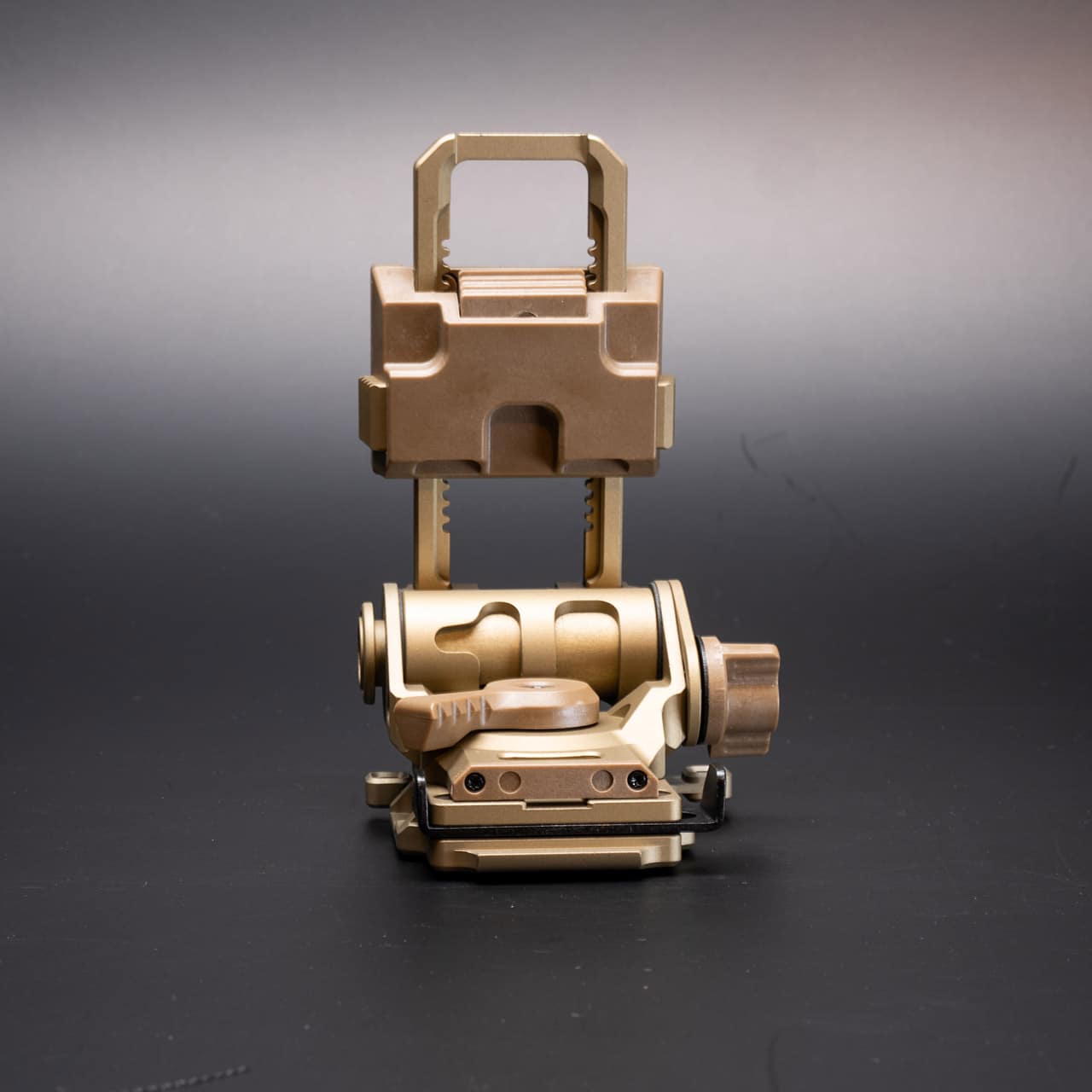 The Argus LWNVM features skeletonized construction throughout and is made of 6061T6 aluminum for rugged use. 3-Dimensional Adjustments (Fore/aft, Up/Down, and Tilt) allow the user to adjust their night vision equipment to sit perfectly on their head and in front of their face.