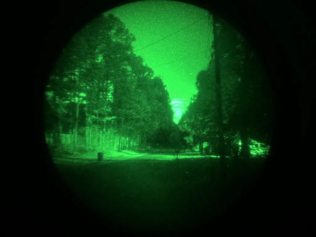 Note: the following photo was taken with an iPhone 13 Pro Max, through an American PVS-14 using Chinese Glass. It was an absolutely moonless night, far away from any cities (20+ miles, very flat land) and the light sources in the photo was almost invisible to my naked eye.